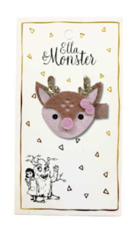 Et nuttet rensdyr med glitrende gevir og en fin sløjfe – lige til at sprede juleglæde i håret. Perfekt til decemberdage, julehygge og små magiske øjeblikke.
