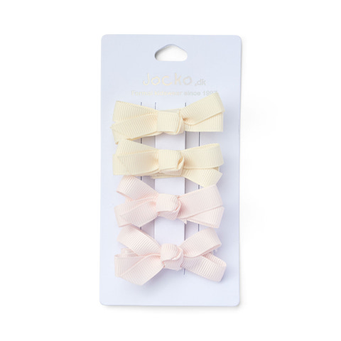 Giv håret et sødt og elegant løft med disse hårspænder fra Jocko. Spænderne kommer i et sæt med fire styk i smukke nuancer, der passer til ethvert outfit. De fine sløjfer giver et klassisk og feminint udtryk, som både små og store piger vil elske. Hårspænderne er nemme at sætte i håret og sidder godt fast, så de kan bruges både til hverdag i børnehaven, skolen eller til festlige lejligheder. De bløde farver gør dem alsidige og lette at matche med både kjoler, bukser og bluser. Perfekte til at holde styr på håret eller som en sød detalje i frisuren.