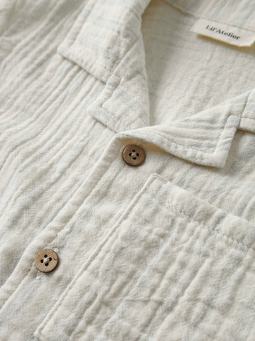 Hagi Skjorte fra Lil' Atelier i farven Coconut Milk er en skøn og stilfuld skjorte til børn, der kombinerer komfort med et klassisk udtryk. Skjorten er fremstillet i blød bomuld, som føles behagelig mod huden og sikrer, at dit barn kan bevæge sig frit hele dagen. Det lette materiale gør skjorten ideel til varme sommerdage, men den kan også nemt styles med en cardigan eller jakke, når vejret bliver køligere. Skjorten har korte ærmer, en flot krave og lukkes med fine knapper foran, hvilket giver et elegant og afslappet look. Den enkle brystlomme tilføjer et praktisk og dekorativt element, mens den neutrale farve gør skjorten nem at matche med både bukser, shorts og nederdele. Hagi Skjorte er et alsidigt valg, der passer til både hverdag og festlige lejligheder, og den tidløse stil gør den til en favorit i garderoben sæson efter sæson. Lil' Atelier er kendt for deres fokus på kvalitet og komfort, og denne skjorte er ingen undtagelse – den er skabt til at holde og bevare sit flotte udseende, selv efter mange vaske. Giv dit barn en behagelig og stilfuld oplevelse med denne fine skjorte.
