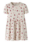 Haline Kjole fra NAME IT er en skøn og komfortabel kjole, der kombinerer et sødt design med bæredygtige materialer. Kjolen har en flot peyote melange bundfarve, pyntet med små mariehøns og hjerter, som giver et legende og charmerende udtryk. Den bløde og strækbare kvalitet sikrer, at barnet kan bevæge sig frit og komfortabelt hele dagen, uanset om det er til hverdag eller festlige lejligheder. Kjolen har korte ærmer og en rund halsudskæring, hvilket gør den nem at tage af og på. Den lette rynkning i taljen giver kjolen et flot fald og en god pasform, der klæder de fleste børn. Materialesammensætningen med økologisk bomuld, modal og elastan gør kjolen ekstra blød mod huden og sikrer god åndbarhed samt fleksibilitet. Kjolen er nem at vedligeholde og holder formen vask efter vask, så den kan bruges igen og igen. Haline Kjole er et oplagt valg til forældre, der ønsker en både praktisk og miljøvenlig garderobe til deres børn. Med sit søde print og behagelige materiale bliver den hurtigt en favorit i klædeskabet.
