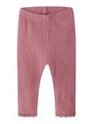 Hallie Leggings fra NAME IT er et skønt valg til de mindste, der både ønsker komfort og stil i hverdagen. Disse leggings er lavet i en blød og strækbar ribkvalitet, som sikrer, at barnet kan bevæge sig frit og ubesværet hele dagen. Den smukke "Mesa rose" farve giver et feminint og moderne udtryk, mens den fine blondekant ved anklerne tilføjer et ekstra sødt touch. Leggingsene har en elastisk talje, der gør dem nemme at tage af og på, og som samtidig sikrer en god pasform uden at stramme. Materialet består af økologisk bomuld blandet med elastan, hvilket gør dem både åndbare og behagelige mod huden – perfekt til sart børnehud. Hallie Leggings kan bruges alene eller under kjoler og nederdele, og de er nemme at matche med andre styles fra garderoben. De er ideelle til både leg og afslapning, og den høje kvalitet sikrer, at de holder form og farve vask efter vask. NAME IT er kendt for deres fokus på komfort, funktionalitet og bæredygtighed, og disse leggings er ingen undtagelse. Specifikationer: