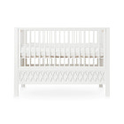 Smuk ballet dansende seng Om det er prinsen eller prinsessens værelse der skal indrettes betyder det meget at sengen er harmonisk, giver et trygt sovemiljø og følger barnets udvikling. Cam Cam Harlequin sengen giver netop dette til barnet. Sengen er lige så raffineret, som den er funktionel, og bringer tidløs elegance til et hvert børneværelse. Bunden kan justeres i 3 forskellige højder, så i starten til den lille nyfødte kan bundes være i midten, og med tiden når baby vokser og begynder at rejse sig op ad ting, er det på tide at bunden flyttes ned. De 3 forskellige højder 20 cm., 27, cm. og 55 cm., giver derved muligheder for lige den position man ønsker. Sidepanelet kan nemt fjernes med 2 børnesikre knapper, og sengen forvandles let fra en babyseng, til stadie før junior seng - perfekt løsning. På den opdateret version har Cam Cam Copenhagen sørget for at ingen skruer er synlige. Derudover er de indvending mål gjort mindre, så når bunden står i øverste position er der mindre luft mellem sengegavl og madras. En forbedret fastgørelse af bundpladen har gjort det er blevet nemmere at hæve og sænke bundpladen. Til sidst er sengegavlene samlet fra fabrikken, så sengen bliver nemmere at samle derhjemme.