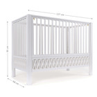 Smuk ballet dansende seng Om det er prinsen eller prinsessens værelse der skal indrettes betyder det meget at sengen er harmonisk, giver et trygt sovemiljø og følger barnets udvikling. Cam Cam Harlequin sengen giver netop dette til barnet. Sengen er lige så raffineret, som den er funktionel, og bringer tidløs elegance til et hvert børneværelse. Bunden kan justeres i 3 forskellige højder, så i starten til den lille nyfødte kan bundes være i midten, og med tiden når baby vokser og begynder at rejse sig op ad ting, er det på tide at bunden flyttes ned. De 3 forskellige højder 20 cm., 27, cm. og 55 cm., giver derved muligheder for lige den position man ønsker. Sidepanelet kan nemt fjernes med 2 børnesikre knapper, og sengen forvandles let fra en babyseng, til stadie før junior seng - perfekt løsning. På den opdateret version har Cam Cam Copenhagen sørget for at ingen skruer er synlige. Derudover er de indvending mål gjort mindre, så når bunden står i øverste position er der mindre luft mellem sengegavl og madras. En forbedret fastgørelse af bundpladen har gjort det er blevet nemmere at hæve og sænke bundpladen. Til sidst er sengegavlene samlet fra fabrikken, så sengen bliver nemmere at samle derhjemme.