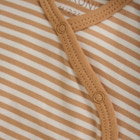Heldragten fra Fixoni er fremstillet i blød bomuld, der føles behagelig mod barnets hud og sikrer optimal komfort hele dagen. Den praktiske trykknaplukning gør det nemt at klæde barnet på og af, hvilket er en stor fordel ved bleskift. Materialet er åndbart og hjælper med at regulere temperaturen, så barnet har det godt både dag og nat. Heldragten er velegnet som både nattøj og hverdagsdragt, og den klassiske stil passer til enhver garderobe. Fixoni er kendt for deres fokus på kvalitet og komfort, hvilket gør denne heldragt til et sikkert valg for både baby og forældre.