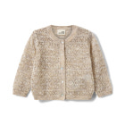kundeservice@babysam.dkHenny Cardigan fra Sofie Schnoor Kids er en elegant og komfortabel cardigan, der kombinerer klassisk design med moderne detaljer. Cardiganen er strikket i et fint hulmønster, som giver et let og luftigt udtryk, samtidig med at den holder barnet varmt. Den bløde blanding af uld, nylon og polyester sikrer både varme og holdbarhed, så cardiganen kan bruges igen og igen – perfekt til både hverdag og festlige lejligheder. Den smukke beige farve gør det nemt at matche cardiganen med resten af garderoben, og de fine knapper foran giver mulighed for at style den åben eller lukket. Ribkanter ved hals, ærmer og bund sikrer en god og behagelig pasform, der bliver siddende, selv når barnet er aktiv. Henny Cardigan er et oplagt valg til de kølige dage, hvor komfort og stil skal gå hånd i hånd. Sofie Schnoor Kids er kendt for deres sans for detaljer og kvalitet, og denne cardigan er ingen undtagelse – et must-have til enhver børnegarderobe.
