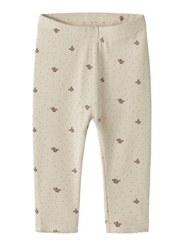 Hitta Leggings fra NAME IT i farven Almond milk er et must-have i enhver børnegarderobe. Disse leggings er fremstillet i en blød og strækbar kvalitet, der kombinerer økologisk bomuld, modal og elastan, hvilket sikrer maksimal komfort og bevægelsesfrihed for dit barn. Det fine print og den diskrete blondekant ved benene giver et sødt og feminint udtryk, som passer til både hverdag og festlige lejligheder. Den elastiske talje gør dem nemme at tage af og på, og sikrer at de bliver siddende, hvor de skal – også når der leges og tumles. Materialet er åndbart og skånsomt mod huden, hvilket gør dem ideelle til selv de mindste børn. Kombinér dem med en body, bluse eller kjole for et komplet og hyggeligt look. Hitta Leggings er et alsidigt valg, der hurtigt bliver en favorit i garderoben, og de kan nemt vaskes og bruges igen og igen uden at miste form eller blødhed. Specifikationer: