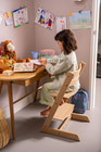 Tripp Trapp® højstolen er designet af Peter Opsvik helt tilbage i 1972 og har været et fast møbel i mange hjem igennem tiden - måske har du som forældre siddet i én? Tripp Trapp® højstolen er produceret i dyrket bøg eller eg, som er en stærk træsort, der gør produktet stabilt og holdbart, og sikrer en lang levetid. Højstolen løfter barnet op til spisebordet og skaber nærhed og fællesskab mellem barn og voksen, om det er spisetid eller hyggetid ved spisebordret. Det er let at tilpasse sidde- og fodplade i både højde og i dybden, i takt med at barnet vokser. Dermed opnås en optimal siddestilling med god bevægelsesfrihed, og støtte for både fødder og ryg. Den stabile fodplade giver dit barn sikkerhed og frihed til at bevæge sig på stolen, hvilket stimulerer barnets motoriske udvikling. Fuld fodstøtte sikrer desuden at barnets ben ikke kommer til at sove. Når stolen er justeret korrekt sidder dit barn behageligt og ergonomisk korrekt uanset alder. Med Tripp Trapp® højstolen kommer dit barn til at sidde med ved spisebordet og nyde måltiderne sammen med resten af familien. Det solide og holdbare design gør at Tripp Trapp® stolen kan anvendes som højstol og senere som en ekstra stol - når der er gæster, eller når der er brug for en skrivebordsstol, og med et klassisk look vil stolen aldrig gå af mode.