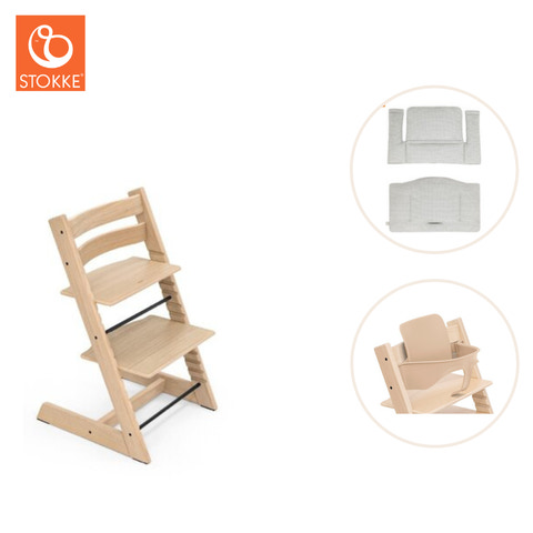 Ved tilkøb af Tripp Trapp® Newborn Set kan højstolen bruges allerede fra nyfødt, og derefter med Tripp Trapp® Babyset så er barnet med til bords lige fra begyndelsen.