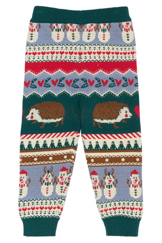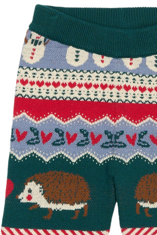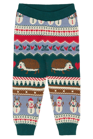 Disse strikbukser fra THE NEW Siblings er en festlig og hyggelig tilføjelse til feriegarderoben. Dekoreret med farverige julemotiver som pindsvin, snemænd og hjerter i klassisk jacquardstrik matcher de den koordinerende julesweater. Ribkantet linning og manchetter sikrer en behagelig og sikker pasform - perfekt til afslapning og feriesjov.