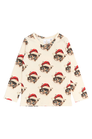 Dette pyjamassæt fra THE NEW Siblings er både hyggeligt og festligt – perfekt til sengetid i feriesæsonen. Det inkluderer en langærmet top og matchende bukser med et sjovt all-over print, der fås i to versioner: katte iført nissehuer eller dinosaurer i juletøj. Det bløde og strækbare ribbede stof sikrer god komfort og lang bevægelsesfrihed hele natten.