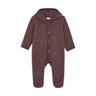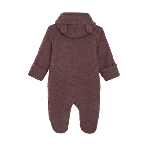 Ulddragt fra Fixoni. Dragten er lavet i børstet uld og har en hætte med påsyede ører. Knaplukning foran, ombuk ved ærmerne og fødder. Certificeret i hht. OEKO-TEX® STANDARD 100 Cert. No. 2276-364 DTI. Lavet af Merinould, og det er WOOLMARK - Merino Extra Fine certificeret under licens nr: 0030001353 af THE WOOLMARK COMPANY.