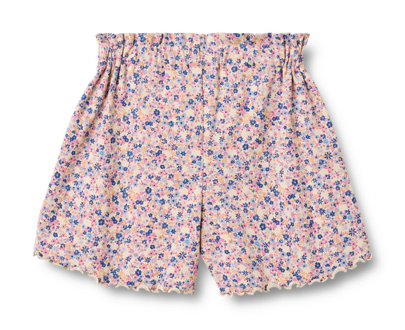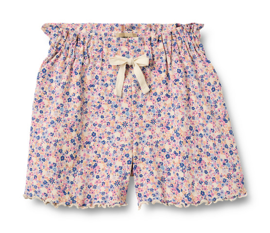 Ina Shorts fra Wheat er et skønt valg til sommergarderoben, hvor komfort og sødt design går hånd i hånd. Shortsene er fremstillet i en blød og strækbar kvalitet med 95% bomuld og 5% elastan, hvilket sikrer, at de er behagelige at have på hele dagen – uanset om det er til leg, afslapning eller festlige lejligheder. Det fine blomsterprint i pink og blå nuancer giver et friskt og feminint udtryk, der passer perfekt til solrige dage. Den elastiske talje gør det nemt for barnet selv at tage shortsene af og på, og den dekorative sløjfe foran tilføjer et ekstra charmerende touch. De bølgede kanter forneden fuldender det legende look og giver shortsene et let og luftigt udtryk. Wheat er kendt for deres fokus på kvalitet og komfort, og disse shorts er ingen undtagelse – de er både slidstærke og nemme at vedligeholde. Kombinér dem med en enkel t-shirt eller en bluse for et fuldendt sommeroutfit, der både er praktisk og stilfuldt.