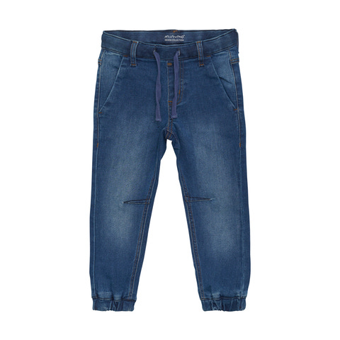 Smarte denim jeans med løs pasform til drenge. Bukserne er lavet i strækbart stof, som gør det let at bevæge sig frit. Elastik ved anklerne sørger for, at bukserne sidder godt. Bæltestropper og justérbar elastik i taljen.