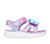 Jumpsters sandal butterfly brites fra SKECHERS er den perfekte sommersandal til børn, der elsker farver og sjov. Sandalen har et flot lilla tekstiloverdel med glitrende effekter og en stor, lysende sommerfugl på forfoden, som blinker ved hvert skridt. De justerbare velcroremme gør det nemt for barnet selv at tage sandalen af og på, og sikrer samtidig en god og sikker pasform. Den bløde og lette sål giver komfort hele dagen, uanset om det er til leg i haven, på stranden eller på ferie. Sandalen er designet med fokus på både funktion og stil, så barnet kan bevæge sig frit og samtidig skille sig ud med et unikt look. SKECHERS er kendt for deres kvalitet og komfort, og denne sandal er ingen undtagelse – den kombinerer holdbare materialer med et sjovt og børnevenligt design, der gør den til en favorit i sommergarderoben.