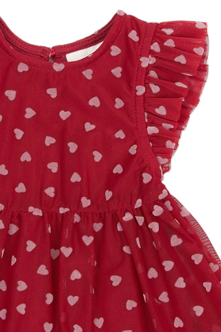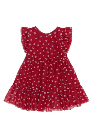 kundeservice@babysam.dkDenne kjole fra THE NEW Siblings er perfekt til festlige lejligheder med sit romantiske og legende design. Den er lavet af lagdelt tyl med et delikat all-over hjerteprint og har søde flæsedetaljer ved ærmer og forneden. Kjolen har en rund halsudskæring og en behagelig pasform med en forsigtigt udstrakt nederdel, der giver masser af luftigt bevægelsesfrihed og et luftigt look.