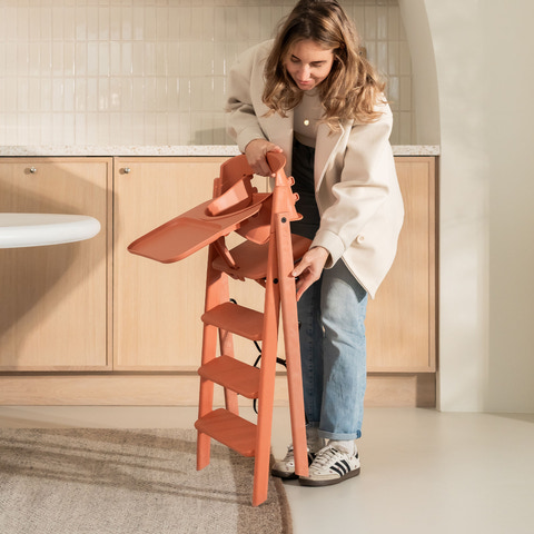 kundeservice@babysam.dkKAOS Klapp højstolen vil være en smuk tilføjelse rundt om spiseborderet. Dens foldbare design gør den til en fantastisk pladsbesparende højstol, der også er perfekt bærbar lige til at tage med sig. De faste stigetrin er unikke og gør det nemt for barnet at klatre op og ned af KAOS Klapp højstolen på egen hånd. Barnet får en ergonomisk og aktiv siddeplads og hviler benene naturligt ved de forskellige trin, når de vokser. KAOS Klapp højstol til børn kommer færdig samlet i æsken. Bare fold stolen ud, klik sædet i låseposition, og den er klar til brug. Den er nem at holde ren på grund af dens glatte og solide finish. Klapp er en moderne designklassiker, der holder hele barndommen. KAOS Klapp er designet af den prisvindende norske produktdesigner Ole Petter Wullum.