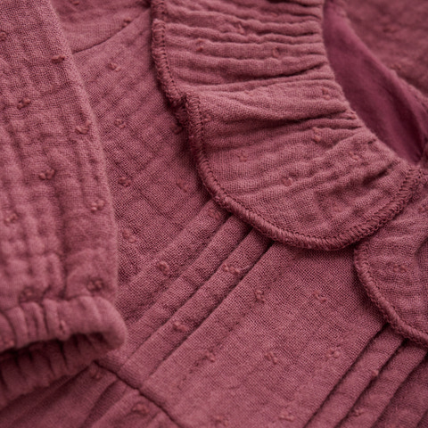 kundeservice@babysam.dkYndig kjole fra EN FANT med smukke detaljer. Kjolen er designet i et flot mønstret vævet materiale og har elegante pufærmer samt en dekorativ flæsekrave, der giver et romantisk udtryk. Den lukkes med trykknapper i ryggen for nem påklædning.