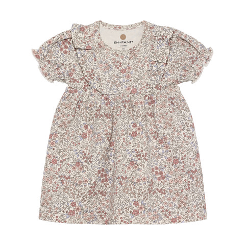 kundeservice@babysam.dkKjole m. Print fra En Fant er en yndig og komfortabel kjole, der passer perfekt til både hverdag og festlige lejligheder. Kjolen er designet med et smukt blomsterprint i afdæmpede farver, som giver et romantisk og klassisk udtryk. Den lette og bløde kvalitet sikrer, at barnet kan bevæge sig frit og komfortabelt hele dagen. Kjolen har fine flæsedetaljer ved skuldrene og korte ærmer, der tilføjer et ekstra feminint touch. Den runde halsudskæring og den lette rynkning ved taljen giver kjolen en flot og flatterende pasform, som klæder de fleste børn. Kjolen er nem at tage af og på, hvilket gør den praktisk i en travl hverdag. Den kan styles med strømpebukser og en cardigan på kølige dage eller bruges alene på varme sommerdage. Kjolen er et oplagt valg til både leg og fest, og det tidløse design gør den nem at kombinere med andre favoritter i garderoben.