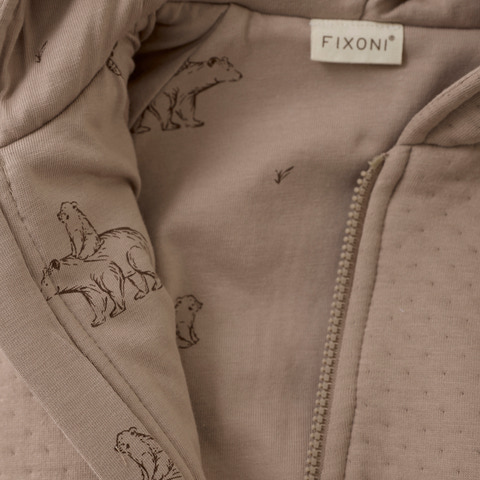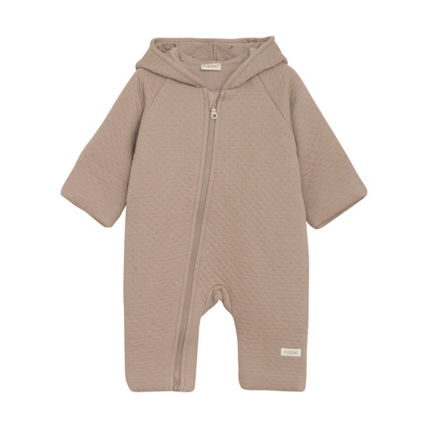 Blød køredragt fra FIXONI i ensfarvet design med sødt printet foer. Dragten har en praktisk lynlås, der går fra midten og skråt ned til højre ben, hvilket gør den nem at tage af og på. Den er designet med fast hætte samt foldbare fødder og luffer, som giver ekstra varme og fleksibilitet.