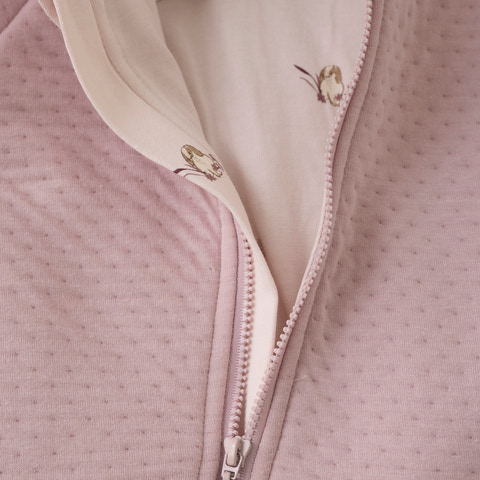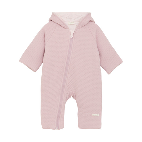 Blød køredragt fra FIXONI i ensfarvet design med sødt printet foer. Dragten har en praktisk lynlås, der går fra midten og skråt ned til højre ben, hvilket gør den nem at tage af og på. Den er designet med fast hætte samt foldbare fødder og luffer, som giver ekstra varme og fleksibilitet.