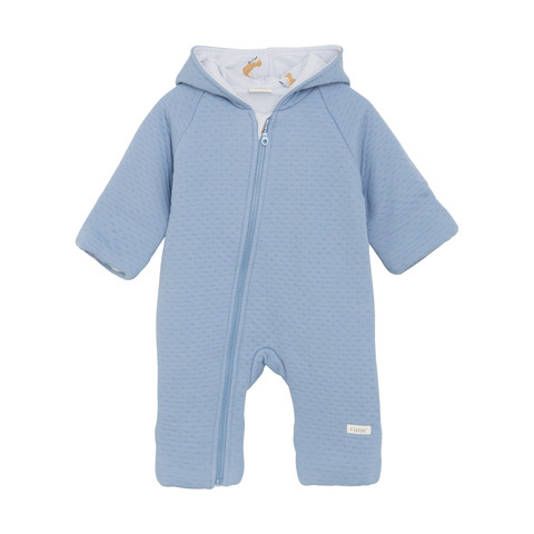 Blød køredragt fra FIXONI i ensfarvet design med sødt printet foer. Dragten har en praktisk lynlås, der går fra midten og skråt ned til højre ben, hvilket gør den nem at tage af og på. Den er designet med fast hætte samt foldbare fødder og luffer, som giver ekstra varme og fleksibilitet.