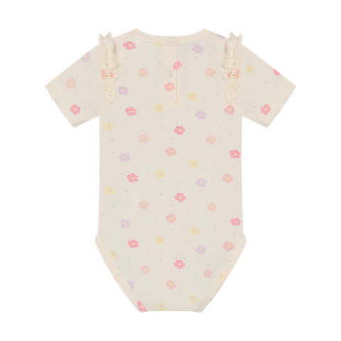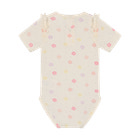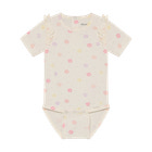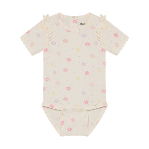 kundeservice@babysam.dkMinymo Kortærmet Body m. Print - Vanilla Ice er et skønt valg til de mindste, der kombinerer komfort og et sødt design. Bodyen er lavet i en blød og behagelig kvalitet, der føles rar mod barnets hud og sikrer god bevægelsesfrihed hele dagen. Det fine print med små blomster i lyse pastelfarver giver et friskt og sommerligt udtryk, mens de små flæser på skuldrene tilføjer et feminint touch. Bodyen har praktiske trykknapper i bunden, som gør det nemt og hurtigt at skifte ble, og den runde halsudskæring gør påklædningen enkel. Den er ideel både som inderste lag og som let sommertøj, og passer perfekt til både bukser, shorts og nederdel.