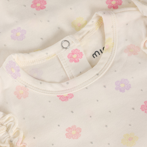 Minymo Kortærmet Body m. Print - Vanilla Ice er et skønt valg til de mindste, der kombinerer komfort og et sødt design. Bodyen er lavet i en blød og behagelig kvalitet, der føles rar mod barnets hud og sikrer god bevægelsesfrihed hele dagen. Det fine print med små blomster i lyse pastelfarver giver et friskt og sommerligt udtryk, mens de små flæser på skuldrene tilføjer et feminint touch. Bodyen har praktiske trykknapper i bunden, som gør det nemt og hurtigt at skifte ble, og den runde halsudskæring gør påklædningen enkel. Den er ideel både som inderste lag og som let sommertøj, og passer perfekt til både bukser, shorts og nederdel.