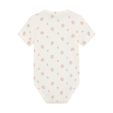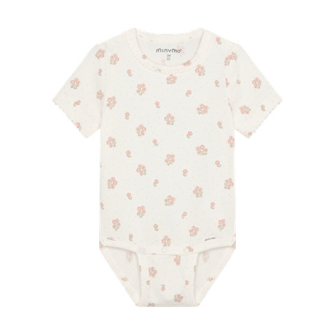 kundeservice@babysam.dkDen kortærmede body fra Minymo i farven Vanilla Ice er et must-have til de mindste. Bodyen er fremstillet i et blødt og komfortabelt materiale, der føles rart mod barnets hud og sikrer optimal bevægelsesfrihed hele dagen. Det fine print med små blomster giver et sødt og charmerende udtryk, som passer perfekt til både hverdag og festlige lejligheder. Bodyen har praktiske trykknapper i bunden, hvilket gør det nemt og hurtigt at skifte ble, og den runde hals sikrer en god pasform uden at stramme. Den er ideel som basislag under andet tøj eller alene på varme dage.