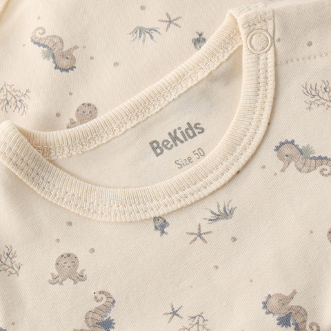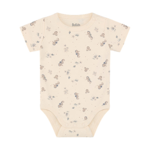 Sødt sommer sæt fra BeKids. Sættet er lavet i en blød bomuldsblanding og består af en allover printet body samt ensfarvede shorts. Bodyen lukkes med trykknapper på skulderen og mellem benene og shortsene har elastik i taljen, hvilket sikrer en god og behagelig pasform.