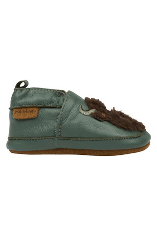 Bedårende læderfutter med dyremotiv fra Mikk-line til babyer og børn. Disse fine hjemmesko holder barnets små fødder dejligt lune, samt mindsker risikoen for at barnet glider og falder på glatte gulve. Futterne har en bredere pasform end lignende indendørssko, så der god plads til den lille fod. De har samtidig et godt greb om anklerne, og glider derfor ikke af de små fødder.
