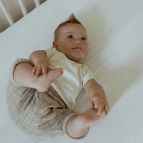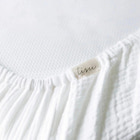 TISU lagner er lavet af superblødt musselinstof, der bliver blødere for hver vask. Elastikken holder lagenet på plads, selvom babyen vender sig. Lagnerne er lavet af åndbar bomuld, der absorberer fugt.