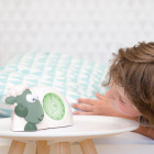 Søvntræner Sam lærer dit barn, hvornår det er tid til at sove, og hvornår det er okay at stå op. Sam lukker øjnene ved sengetid og åbner dem om morgenen, når det er okay at stå op. Natlampen skifter farve som et trafiklys for at angive, hvornår det er nat, tidlig morgen, og hvornår det er okay at stå op. Et barn har ikke noget begreb om tid. For et lille barn begynder dagen, når det vågner, hvilket kan være ret tidligt (og trættende) for forældrene. En søvntræner lærer dit barn med enkle visuelle signaler, hvornår det er tid til at sove, og hvornår det er okay at stå op. Selv meget små børn kan forstå dette begreb: Ved sengetid lukker Sam øjnene... og så er det tid til at sove. Om morgenen, på det tidspunkt du har indstillet, vågner Sam og åbner øjnene for at vise, at det er dag.