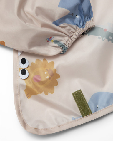 kundeservice@babysam.dkNOUI NOUI Langærmet BLW hagesmæk i beige er den perfekte løsning til måltider og kreative stunder, hvor der gerne må være plads til lidt ekstra sjov - uden at tøjet bliver beskidt. Hagesmækken har lange ærmer, der beskytter både arme og overkrop, og det bløde, lette materiale gør den behagelig for barnet at have på. Det søde dyreprint gør hagesmækken ekstra indbydende for de små, og den praktiske lukkefunktion i nakken sikrer, at den bliver siddende, hvor den skal. Med den medfølgende opbevaringspose kan du nemt tage hagesmækken med på farten, og det ekstra tilbehør gør det endnu lettere at holde styr på måltiderne.