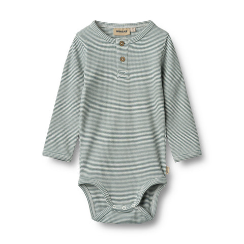 Wheat's body er unisex og et sandt essentielt stykke tøj i din babys garderobe, da det kan bruges alene eller som et ekstra lag under hverdagsbeklædning. Bodyerne har enten trykknapper på skulderen eller knapper ved halsen for bedre komfort, når du klæder din baby på. Bodyen har også trykknapper i bunden, hvilket gør det lettere for dig at skifte din babys ble.