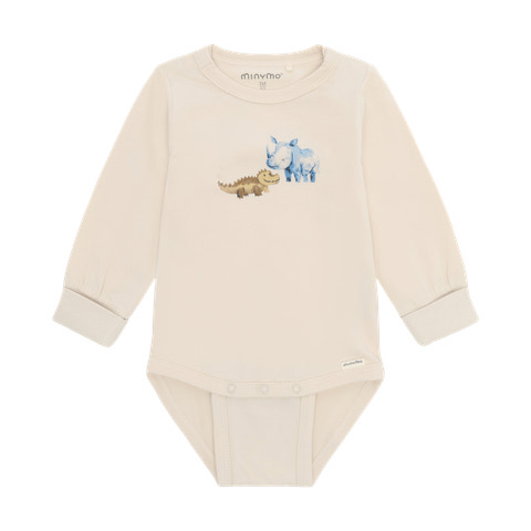 Den langærmede body fra Minymo i modellen White Swan er et skønt valg til de mindste. Bodyen er fremstillet i en blød og behagelig kvalitet, der føles rar mod barnets hud og giver god bevægelsesfrihed. Det fine print på brystet tilføjer et charmerende udtryk, mens kanterne ved ærmerne sikrer en god pasform og ekstra komfort. Med trykknapper i bunden bliver det nemt og hurtigt at skifte ble, hvilket gør bodyen praktisk i hverdagen.