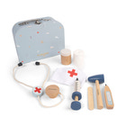 - Indeholder 8 dele: reflekshammer, sprøjte, stetoskop, termometer, pilleæske, bandage, tungespatel og et pandebånd.