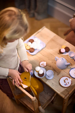 Børn elsker at holde et teselskab! Med dette charmerende te-sæt fra FILIBABBA kan de små invitere deres bamser, dukker eller endda mor og far til at deltage i legen. Sættet er designet til at inspirere til fantasifuldt rolleleg og bringer klassisk legetid til live, samtidig med at det fremmer kreativitet og sociale færdigheder.