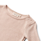 Denne bløde og behagelige body fra Wheat er et ideelt valg til din baby, når temperaturen falder. Fremstillet i en luksuriøs blanding af 85% merinould og 15% silke, sikrer den både varme og komfort – perfekt til sart babyhud.