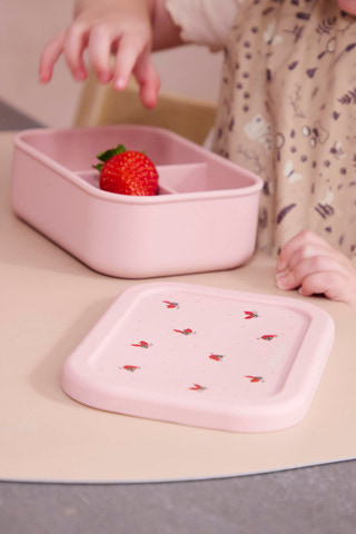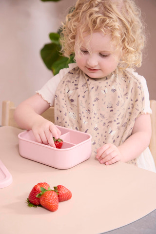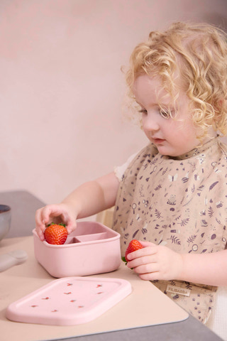 Sød og praktisk madkasse i 100% fødevaregodkendt silikone. Med sin størrelse på 700 ml er der masser af plads til snacks. Madkassen er opdelt i 3 mindre rum, så maden kan forblive adskilt, som mange børn foretrækker.