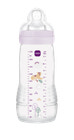 Den ergonomiske sutteflaske er let at holde. MAM Easy Active har en bred åbning, der gør det nemt at fylde og rengøre flasken. Det lækagesikre låg fungerer også som målebæger. MAM Sut 3 med silkeblød silikone, MAM SkinSoft, er inkluderet. Vi stræber efter det bedste for både din baby og miljøet. Alle flaskedele, undtagen silikonesutten, er fremstillet af polypropylen, der er forbundet til biocirkulære råmaterialer i henhold til massebalancemetoden, certificeret af ISCC PLUS.