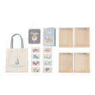 Stofbaldakinen skaber en autentisk markedsstemning, og med kridttavlen og de illustrerede kort kan de udstille deres produkter på en flot måde. Sættet indeholder også en indkøbspose og kasser til en rigtig indkøbsoplevelse.Vend markedsboden om, så bliver den til en café med menukort og muntre illustrationer. Kombiner den med kasseapparatet, vægten eller kagestativet for at få endnu mere sjov leg. Hvad står der på menuen i dag?