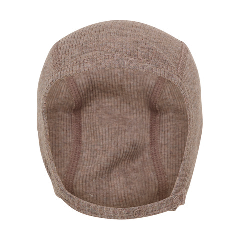 Babyhue fra FIXONI i smuk mélange-kvalitet. Huen lukkes under hagen med en justerbar trykknap, som sikrer en god og behagelig pasform.