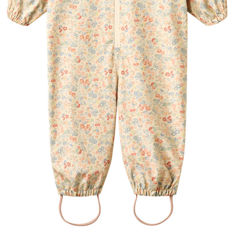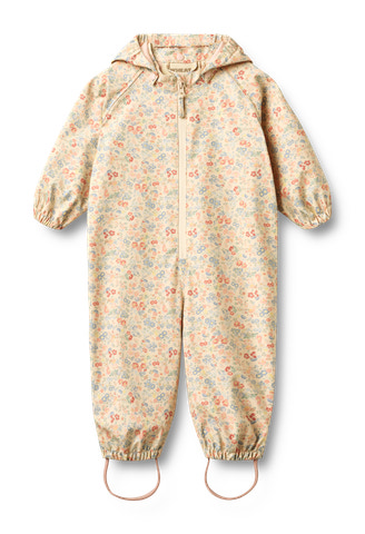 Wheat's praktiske regntøj er en væsentlig del af dit barns garderobe. Det er lavet i et superblødt og let materiale, som gør det behageligt for dit barn at have på og bevæge sig rundt i. Regndragten er vandtæt og smudsafvisende, og den er derfor nem at rengøre med en våd klud. Dragten er perfekt til lange gåture og små besøg på legepladsen i de evigt skiftende sæsoner. Dragten har en lynlås foran med lynlåsgarage, så lynlåsen ikke generer dit barn. Den har en justerbar elastik bagpå samt elastikker omkring håndled og i benene for, at den kan holde vand og andet ude.