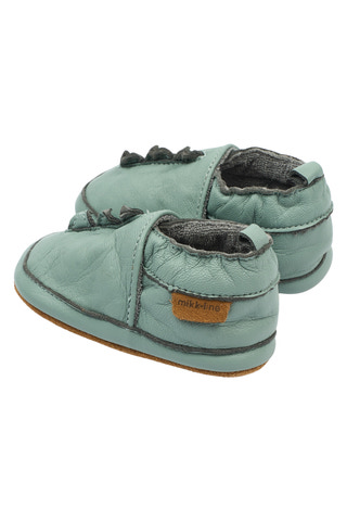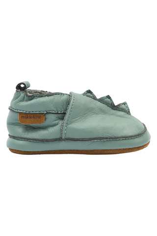 Bedårende læderfutter med dino detaljer fra mikk-line til babyer og børn. Disse fine hjemmesko holder barnets små fødder dejligt lune, samt mindsker risikoen for at barnet glider og falder på glatte gulve. Futterne har en bredere pasform end lignende indendørssko, så der god plads til den lille fod. De har samtidig et godt greb om anklerne, og glider derfor ikke af de små fødder. Hjemmeskoene er bløde, fleksible og behagelige for det lille barn. De er nemlig fremstillet af krom- og metalfri garvet læder, der er åndbart, svedabsorberende, slidstærkt og fri for skadelige metaller. Futterne er designet med elastikåbning og læderstrop ved hælkappen, så de er nemme at tage af og på. Det er altafgørende uanset om barnet er lille og spræller, eller om det er et større barn, der udvikler sin selvstændighed og selv tager skoene af og på. Alt i alt er de perfekte som indendørssko til leg og tumlen, uanset om det er i hjemmet, vuggestuen, dagplejen eller børnehaven.