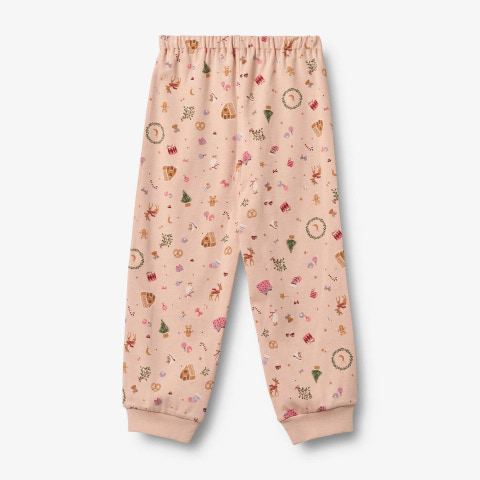 2-delt pyjamas med julemotiver i blødt økologisk bomuld til børn. Wheats charmerende pyjamas med julemotiver er skabt til at sprede magisk julestemning. Med sin bløde pasform er den både let og behagelig for dit barn at have på hele dagen. Det bløde nattøj er behageligt at have på og er perfekt til de kolde efterårs- og vinternætter. Pyjamassættet kommer med matchende T-shirt og bukser. T-shirten er simpel og langærmet, hvor bukserne har en blød elastik i taljen.