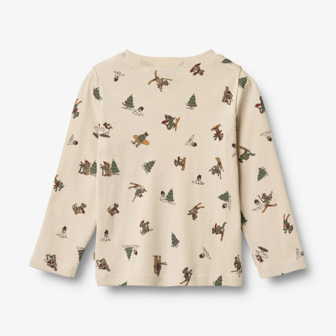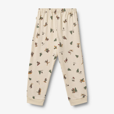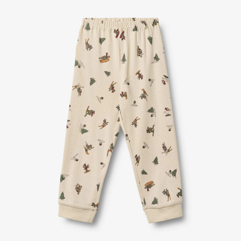 2-delt pyjamas med julemotiver i blødt økologisk bomuld til børn. Wheats charmerende pyjamas med julemotiver er skabt til at sprede magisk julestemning. Med sin bløde pasform er den både let og behagelig for dit barn at have på hele dagen. Det bløde nattøj er perfekt til de kolde efterårs- og vinternætter. Pyjamassættet kommer med matchende T-shirt og bukser. T-shirten er simpel og langærmet, hvor bukserne har en blød elastik i taljen.