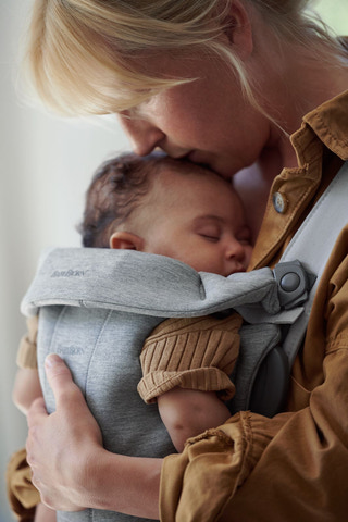 Mini bæreselen er lille, blød og nem at bruge. Den er designet til at imødekomme et meget lille barns store behov for nærhed til forældrene.