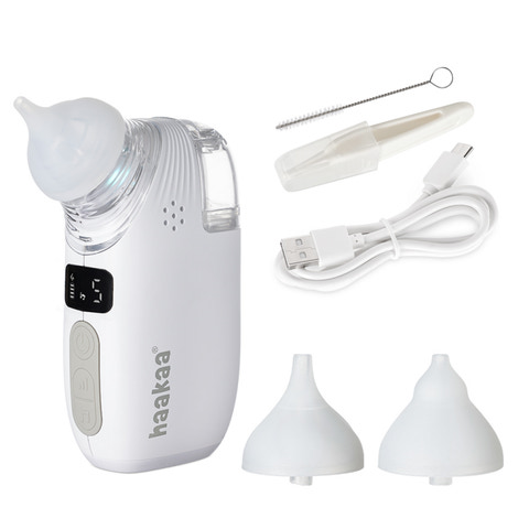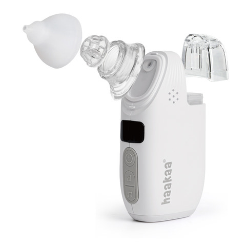 Afhjælp stoppede næser nem, skånsom og effektiv med den smarte 2-i-1 næsesuger med integreret spray fra Haakaa. Den er udviklet til hurtigt at løsne og fjerne slim, så dit barn kan trække vejret frit igen uden stress eller ubehag. Sprayfunktionen fugter næsen og hjælper med at opløse slimen, hvorefter sugedelen forsigtigt fjerner den. Den bløde spids i medicinsk silikone er designet til små næser og sikrer en behagelig oplevelse, mens de forskellig sugestyrker giver dig fuld kontrol.