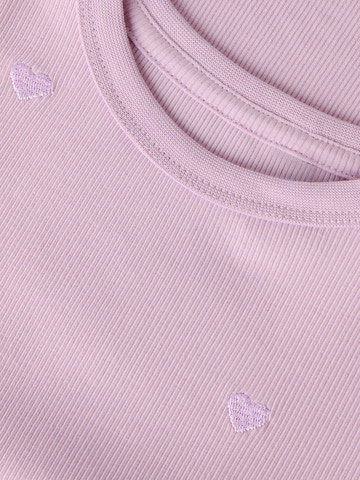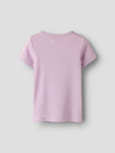 Nakal Slim T-Shirt fra NAME IT i farven Fragrant Lilac er den perfekte basis t-shirt til garderoben. Den er fremstillet i en blød og strækbar ribkvalitet, der sikrer høj komfort og bevægelsesfrihed hele dagen. T-shirten har en smal, kropsnær pasform, som giver et moderne og stilrent udtryk, og den fine lilla nuance gør den let at kombinere med både bukser, nederdele og shorts. De små, diskrete hjertebroderinger fordelt over hele t-shirten tilføjer et sødt og feminint præg, som børn vil elske. Den runde halsudskæring og korte ærmer gør den velegnet til både hverdag og festlige lejligheder. Materialet består af 95% bomuld og 5% elastan, hvilket gør t-shirten åndbar, slidstærk og nem at vaske. Perfekt til aktive børn, der ønsker komfort og stil i ét.
