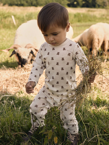 Tilføj bløde og hyggelige uldmodeller til dit barns garderobe og sørg for komfort hele året rundt. Uld er et naturmateriale, der er kendt for sine termiske egenskaber, blødhed og fluffy look. I koldt vejr holder uld på varmen, og på varme dage absorberer det sved, hvilket gør det til et godt valg uanset årstiden. Uld lader huden ånde og bevarer sin isolerende evne, når det er vådt, så kropstemperaturen altid holdes stabil.